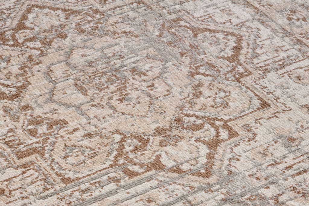 Wprowadź do swojego domu wyjątkowy klimat dzięki dywanowi designerskiemu z orientalnym ornamentem w eleganckiej kolorystyce kremowo-brązowej. Połączenie ciepłych, naturalnych barw z dekoracyjnym wzornictwem sprawia, że dywan idealnie podkreśla charakter klasycznych, rustykalnych oraz nowoczesnych wnętrz. Ornamentowy motyw inspirowany sztuką wschodu dodaje wnętrzu prestiżu i przyciąga wzrok, tworząc efektowny centralny punkt aranżacji.