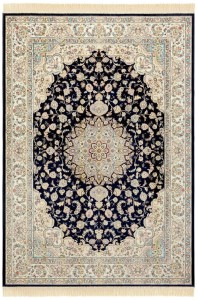 Dywan elegancki Naveh orientalny z frędzlami Medalion Granatowo-Kremowy 195 cm x 300 cm . Wykonany z 60% wiskozy i 40% bawełny — miękki, elegancki i idealny do stylowych wnętrz.