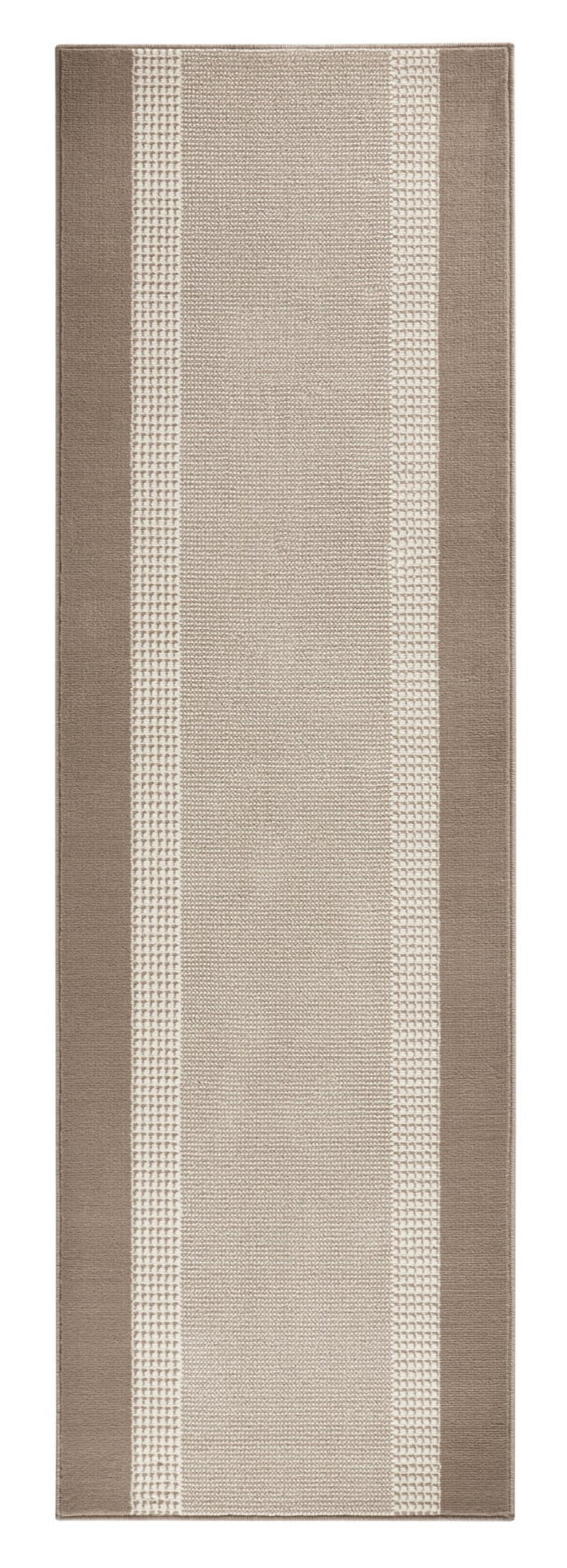 Ponadczasowa elegancja: Kremowo-beżowy kolor to symbol klasy, który nigdy nie wychodzi z mody. Z prostym, geometrycznym wzorem ramki, chodnik doskonale komponuje się z naturalnym drewnem i złotymi dodatkami.