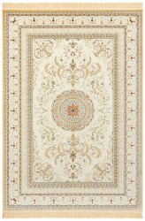 Dywan orientalny Naveh orientalny z frędzlami Rozeta Kremowo-Beżowa 195 cm x 300 cm. Wykonany z 60% wiskozy i 40% bawełny — miękki, elegancki i idealny do stylowych wnętrz.